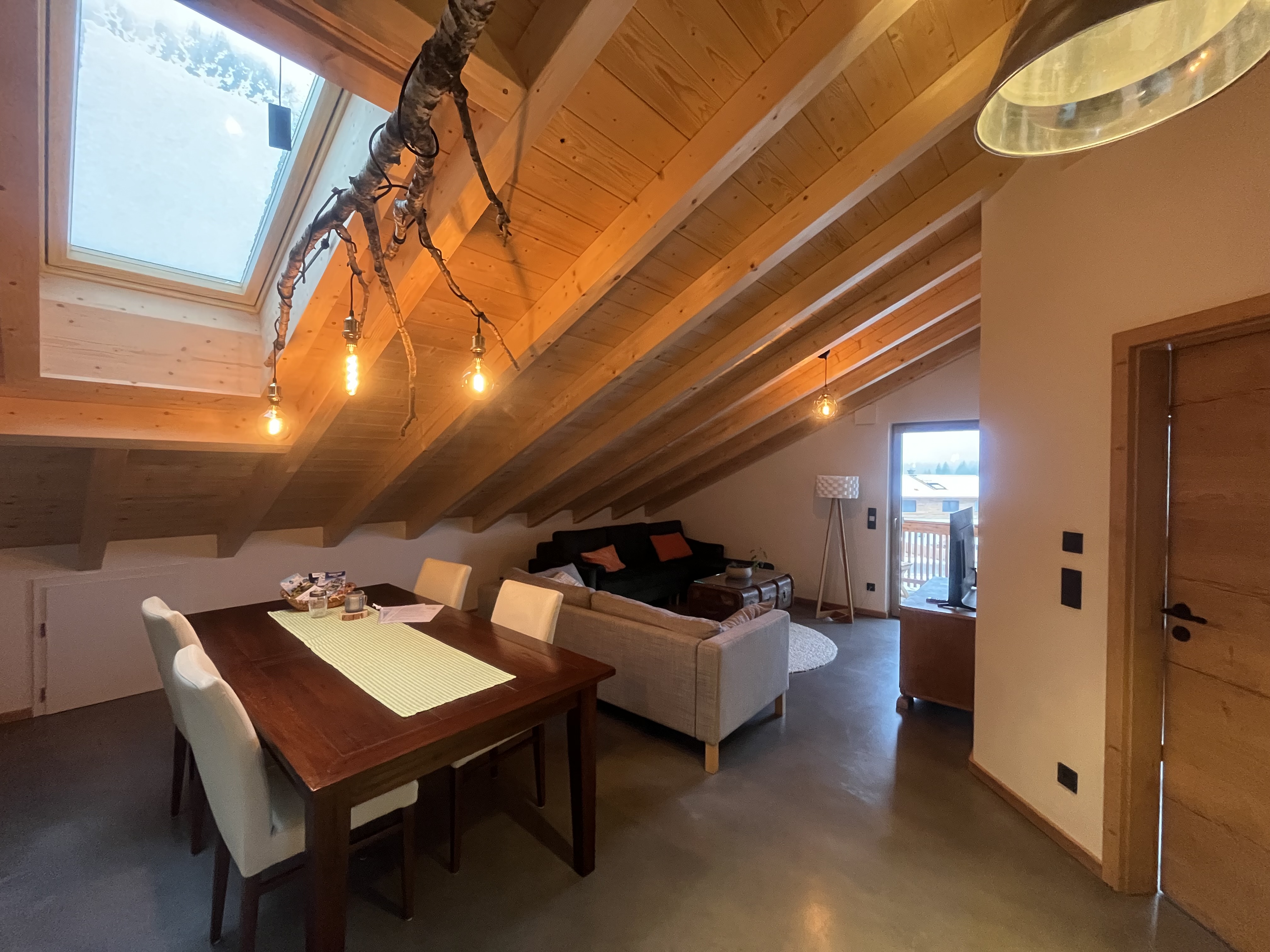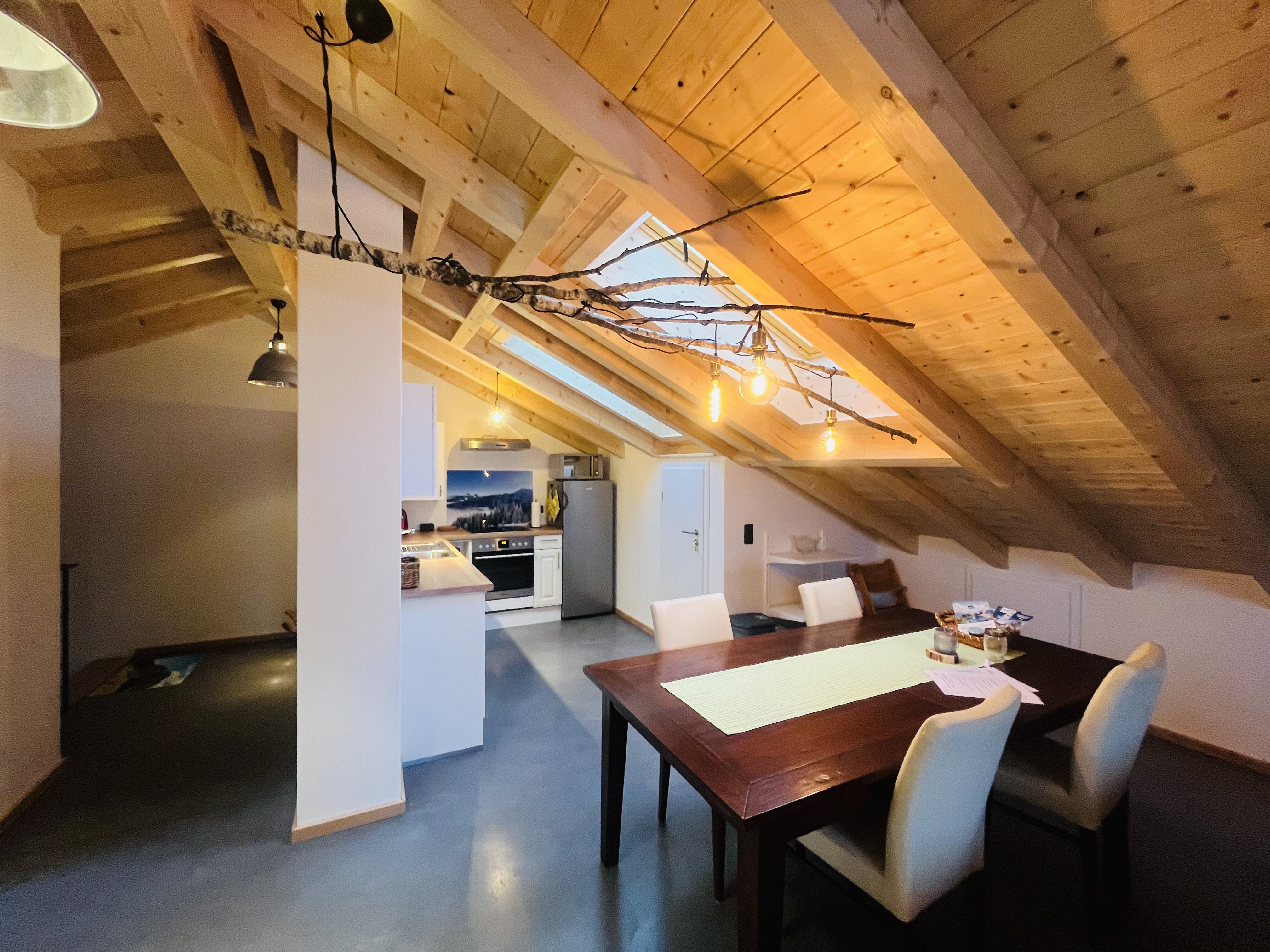 Moderne Ferienwohnung im Dachgeschoss eines neu gebauten Holzhauses. Die natürlichen Baumaterialien sogen für ein besonders angenehmes Raumklima. Wunderschöne Rad- und Wandertouren starten direkt ab der Ferienwohnung. Ein kleiner Badesee ist 200m entfernt. Lass den Tag bei Abendsonne auf dem Balkon mit Blick auf die umliegenden Berge und den See ausklingen.