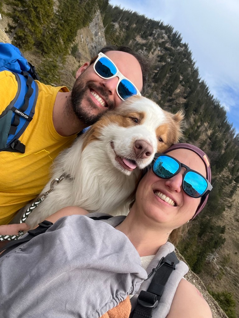 Wir – das sind Franci und Stefan, die kleine Agathe und der Australien Shepherd Floki.
